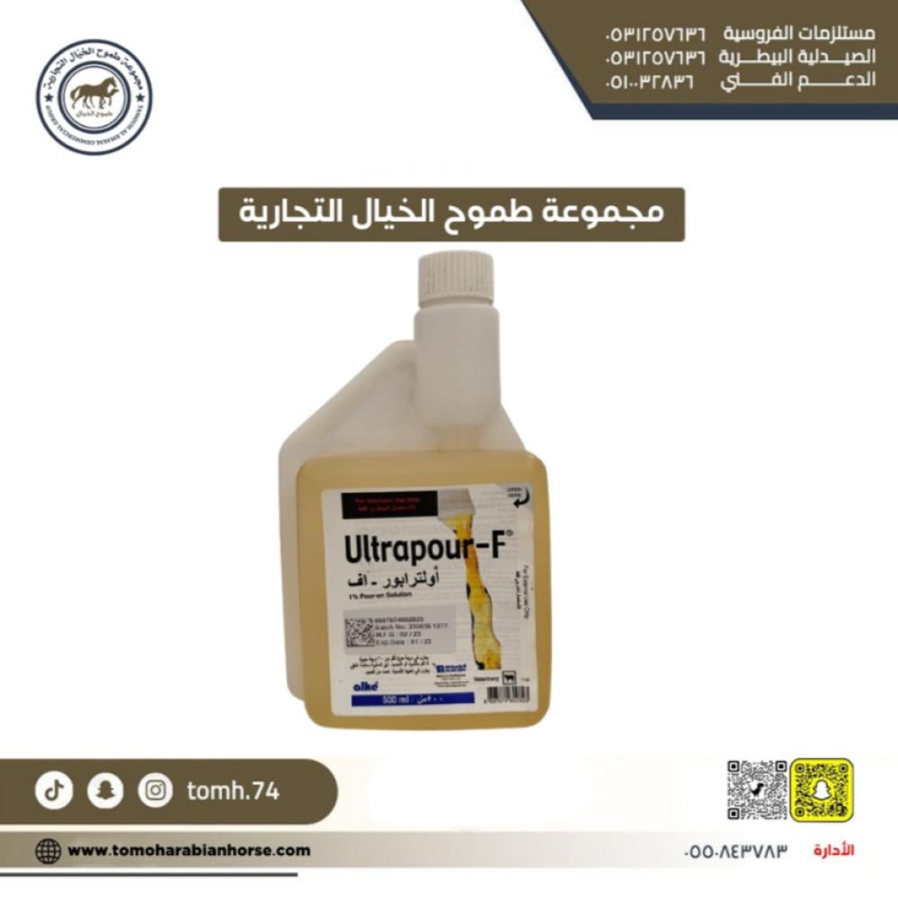 صب من أولترابور اف على ظهر الحيوان مل واحد لكل ١٠ كجم من وزن الجسم للقراد والقمل. ملين اثنين لكل ١٠ كجم من وزن الجسم للجرب.