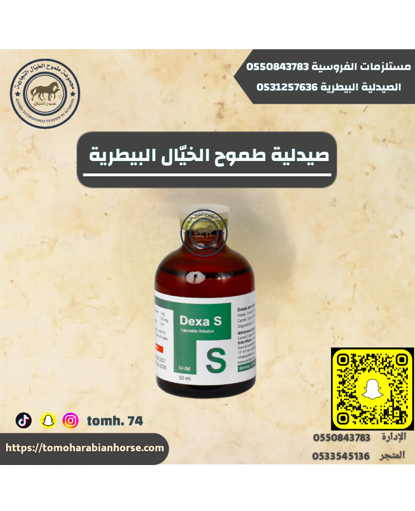 تحتوي دكسا اس Dexa S على مزيج متنوع من هرمونات الدكسا، بالإضافة إلى مواد طاقة تمنح التحمل والقوة أثناء الركض. يُعتبر DEXA-S الحلاقة المثالية للحيوانات المشاركة في سباقات الركض.