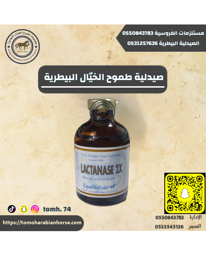 هل تبحث عن طريقة لتعزيز قدرة خيلك أو هجنك على التحمل وتحسين الأداء الرياضي؟ LACTANASE 2X هو المكمل الغذائي المبتكر المصمم خصيصًا لدعم الوظيفة العضلية المثلى وتقليل إجهاد العضلات لدى الخيول والهجن الرياضية. يعتبر هذا المنتج ضروريًا للحيوانات التي تخضع لتدريبات مكثفة أو تشارك في السباقات.