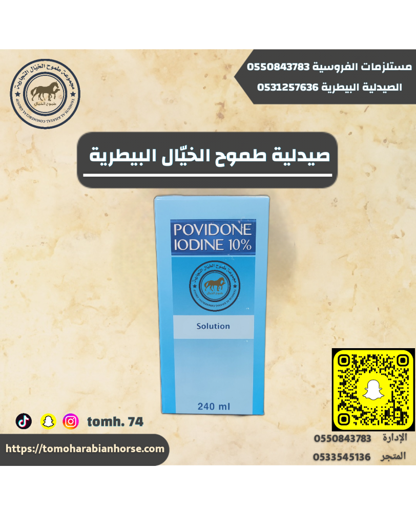 بخاخ بوفيدون اليود 10% (Povidone Iodine 10%) الحل الأمثل للعناية بالجروح والوقاية من العدوى للخيل والهجن