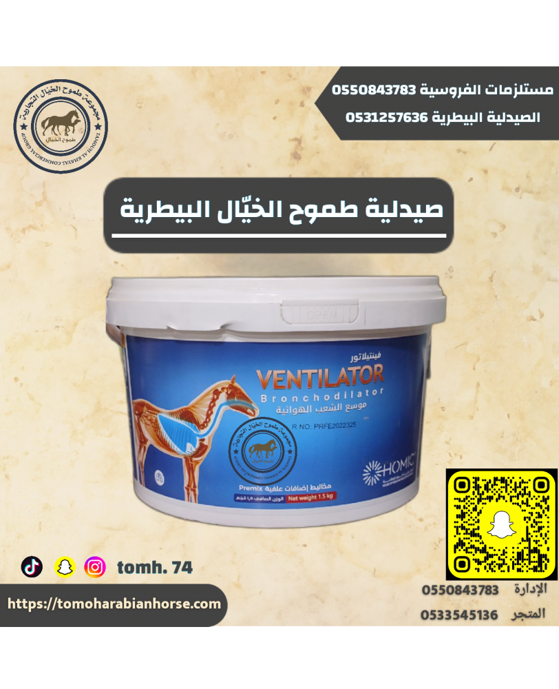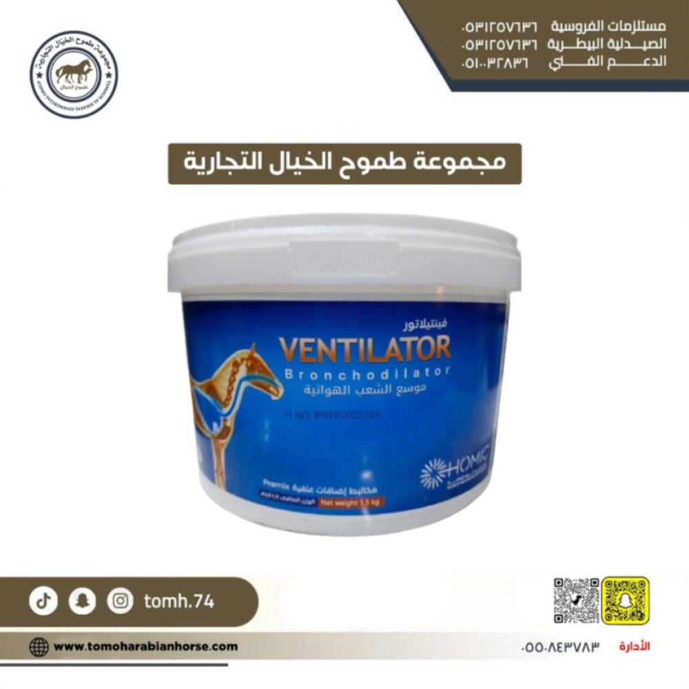 فينتيلاتور نسم دواء موسع شعب هوائية مصنوع من مزيج فريد من الأعشاب ومضادات الأكسدة والمكونات الطبيعية لدعم صحة الجهاز التنفسى يدعم الخيول بشكل طبيعى فى التنفس بشكل سهل .