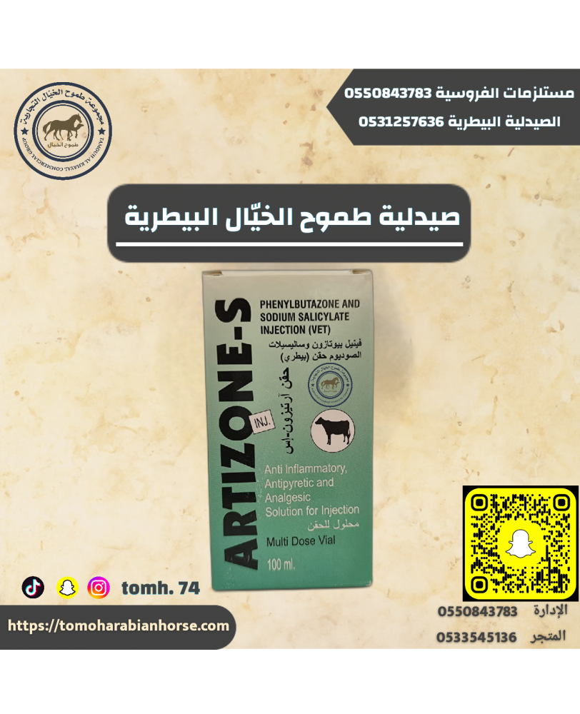 في صيدلية طموح الخيال، نفخر بتقديم منتجات عالية الجودة مثل ARTIZONE-S التي تدعم شغفكم بالخيل والهجن. استثمروا في صحة حيواناتكم لضمان استمرار أدائها وتميزها.