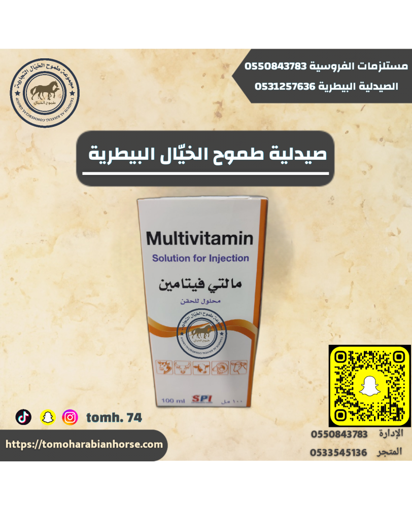 مالتي فيتامين بيطري هو محلول للحقن يحتوي على مجموعة من الفيتامينات الأساسية التي تدعم نمو الحيوانات وتحسين أدائها الصحي. يستخدم لتعويض نقص الفيتامينات وتعزيز المناعة وتحفيز النمو والإنتاجية في المواشي، الخيول، الأغنام، الدواجن، والقطط والكلاب.