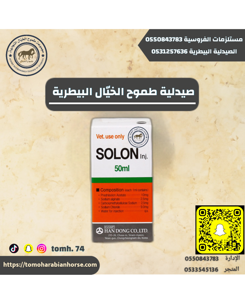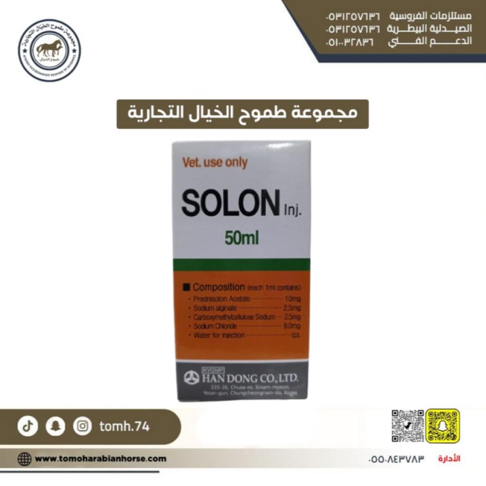 - سولون إن جيكشن هو دواء بوصفة طبية ويجب استخدامه فقط تحت إشراف طبيب بيطري.