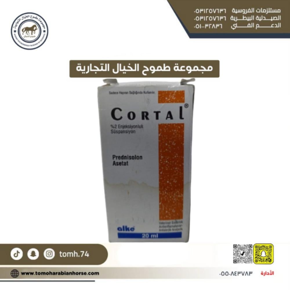 هل تبحث عن علاج قوي وسريع المفعول لمكافحة الالتهابات والتفاعلات التحسسية لدى خيولك وهجنك؟ صيدلية طموح الخيال البيطرية تقدم لك كورتال 20 مل (CORTAL)، المضاد القوي للالتهاب والحساسية الذي يعتني بصحة أبطالك.