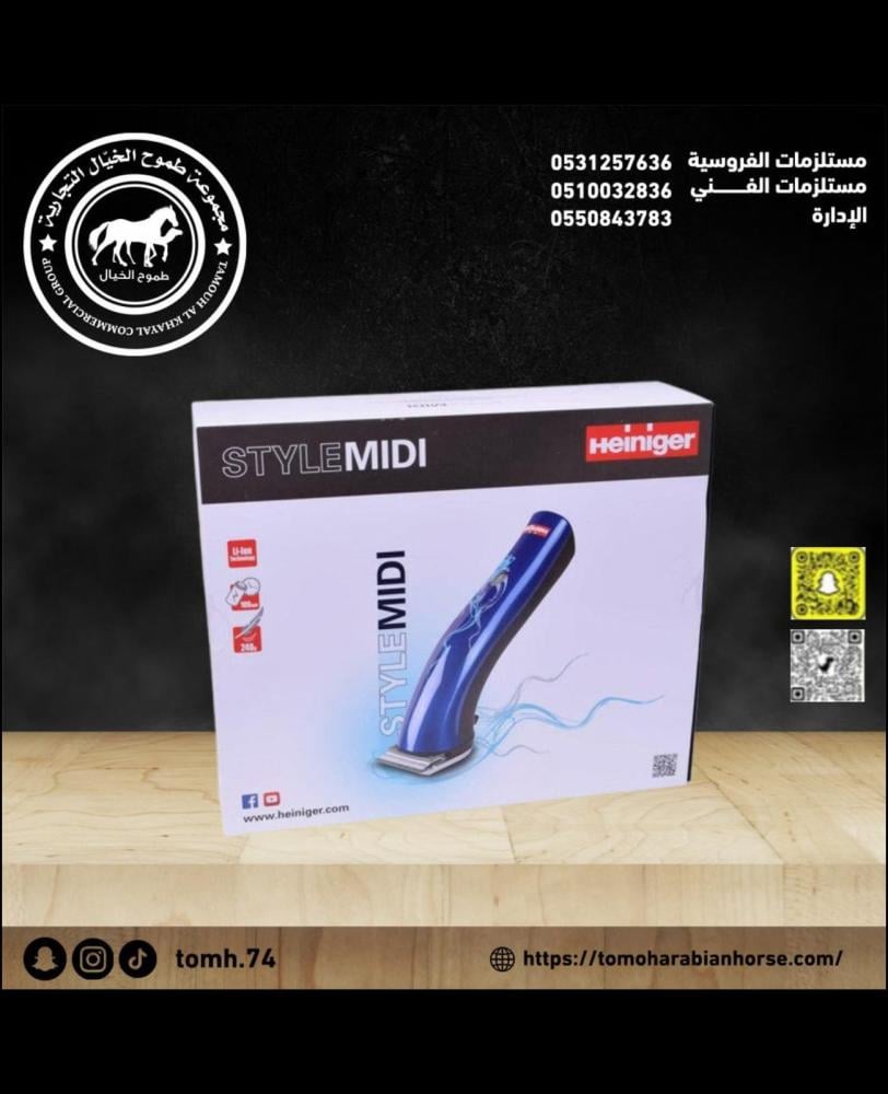 نقدم لك في صيدلية طموح الخيال البيطرية الخيار الأفضل عالمياً: ماكينة حلاقة Heiniger (هاينيجر) السويسرية للخيل. تُعد ماكينات هاينيجر رمزاً للجودة السويسرية والدقة الهندسية، وهي الأداة المفضلة للمحترفين في الإسطبلات والعيادات البيطرية.