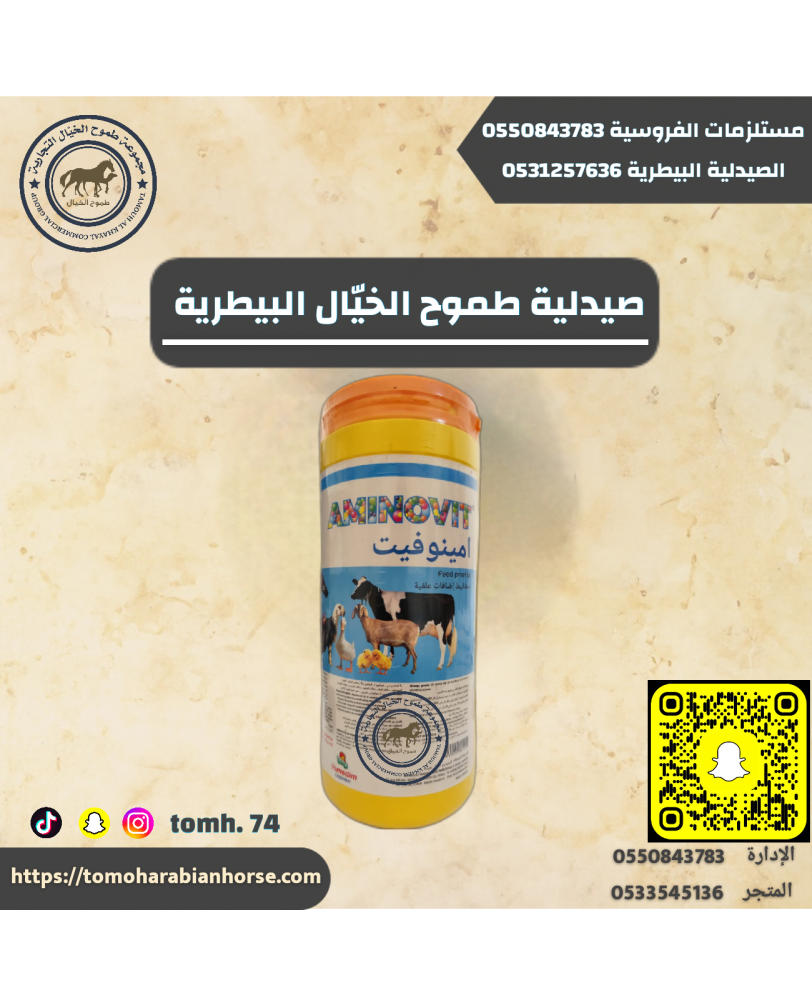 - امينوفيت يحسن صحة الحيوان أثناء فترة النقاهة، أو فقر الدم، أو الإجهاد، أو الاكتئاب، أو الهزال، أو الأمراض المزمنة، أو الأمراض الحادة.