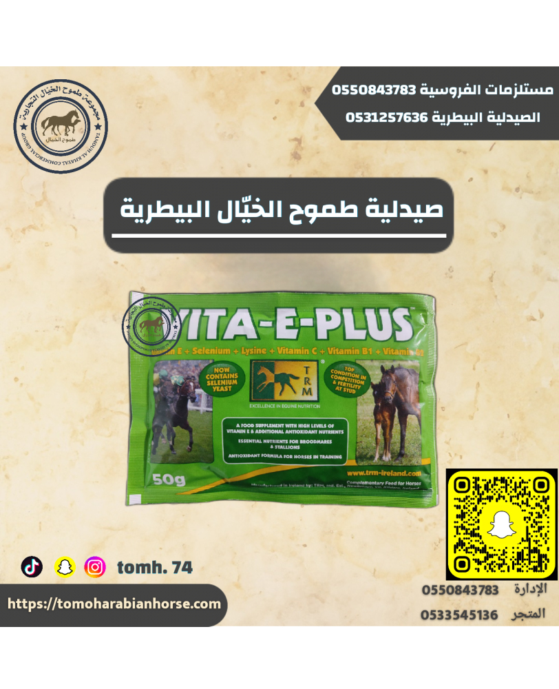 vita e plus هو مزيج متكامل من فيتامين هـ، فيتامين سي، السيلينيوم، وفيتامينات B1 و B2، بالإضافة إلى الليسين الذي يعزز عملية تخليق البروتين وتحسين الأداء العضلي.